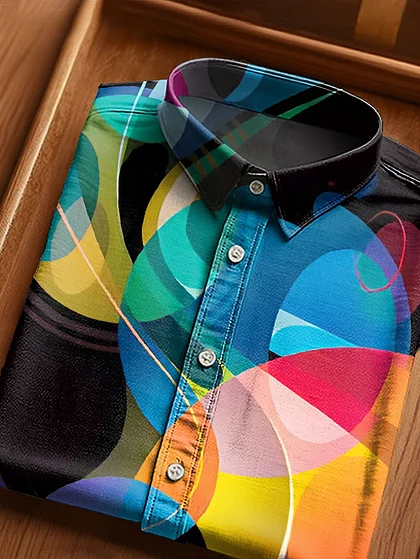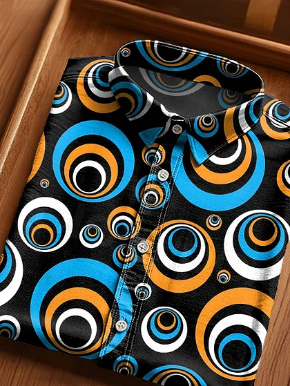 Blue Geometric Color Block Decorative Pattern Casual 100% Cotton Shirt