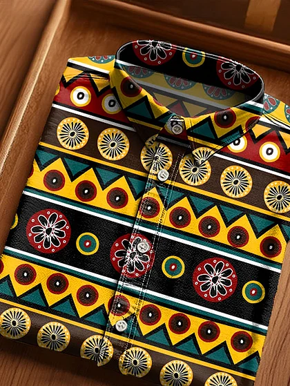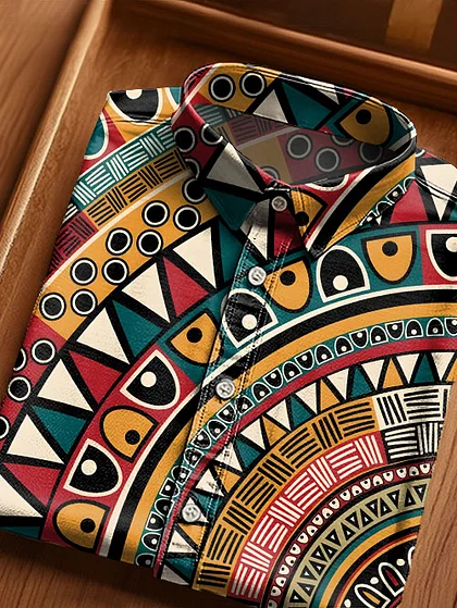 Retro Ethnic Abstract Pattern Art Print T-shirt
