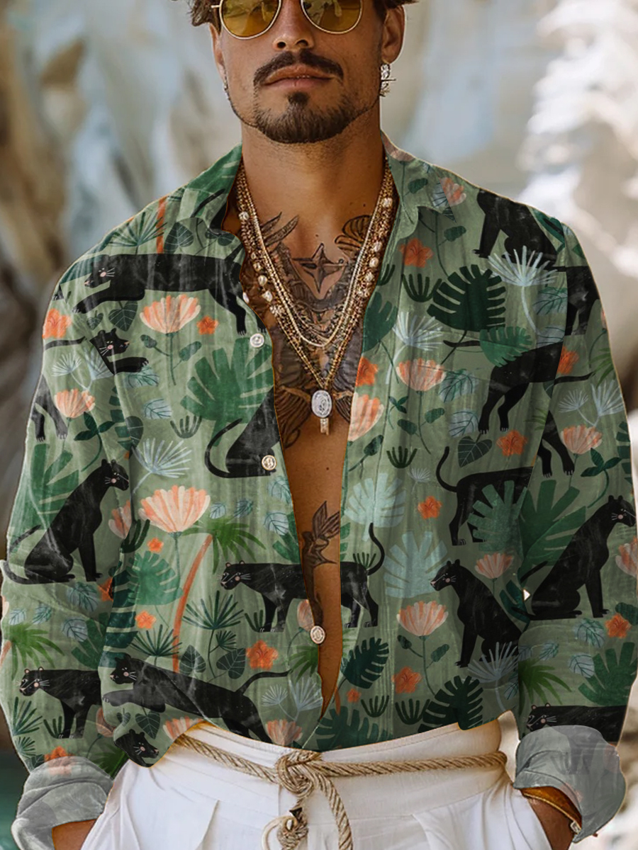 Panther and Jungle Decorative Pattern 100% Cotton Long Sleeve Shirt